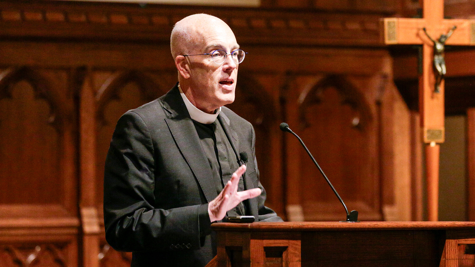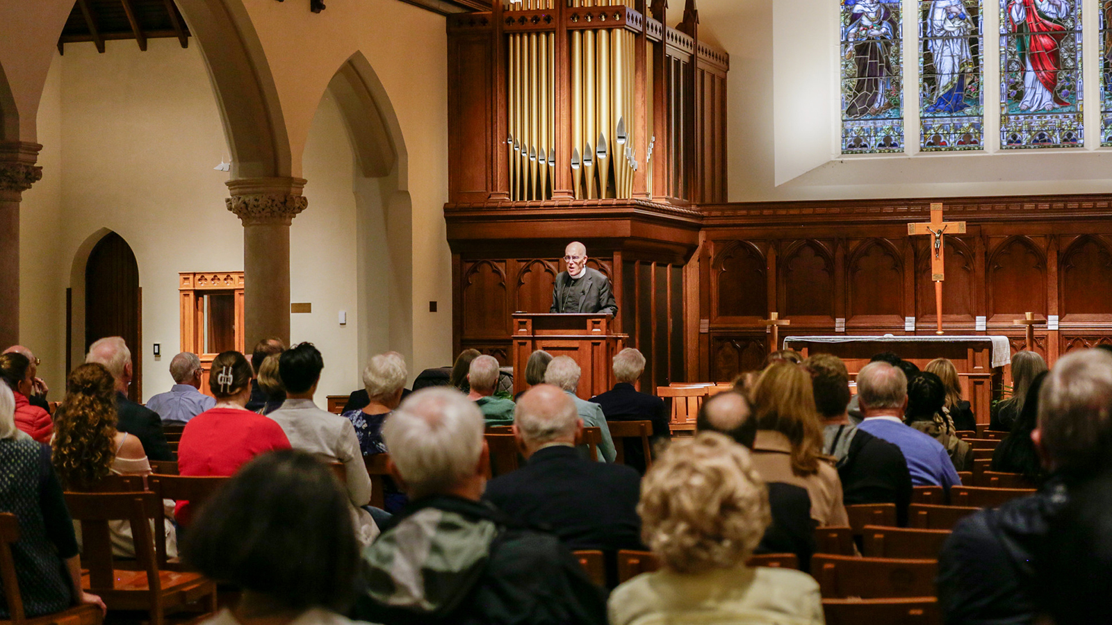 The lecture was delivered by Thomas Williams at Dahlgren Chapel of the Sacred Heart