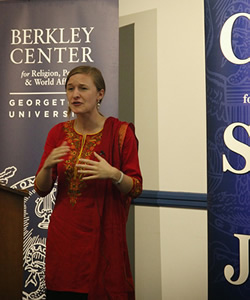 Four current Georgetown students and one recent graduate shared their research findings and experience with the greater Georgetown community at this Homecoming Weekend event. Speakers included 100 Projects for Peace Awardees Phil Wong and Phil Dearing, who traveled to Rwanda during summer 2014; Kendra Layton, one of the 2014 Education and Social Justice Project fellows who conducted research on Caritas in Bangladesh; Andretta Social Justice Research Fellow Elaine Colligan, who spent summer 2014 in Senegal; and alumna and former Fulbright scholar Jordan Denari, who researched the impact of Christian TV on Muslim-Christian relations in Jordan.