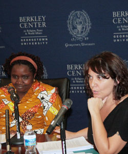 On September 24, Justine Masika Bihamba, a Pax Christi International Peace Prize laureate, discussed her advocacy work on behalf of women affected by violence and rape as a weapon of war in the eastern part of the Democratic Republic of Congo (DRC). Donatella Rostagno, policy director of the European Network for Central Africa, joined Bihamba and served as translator.