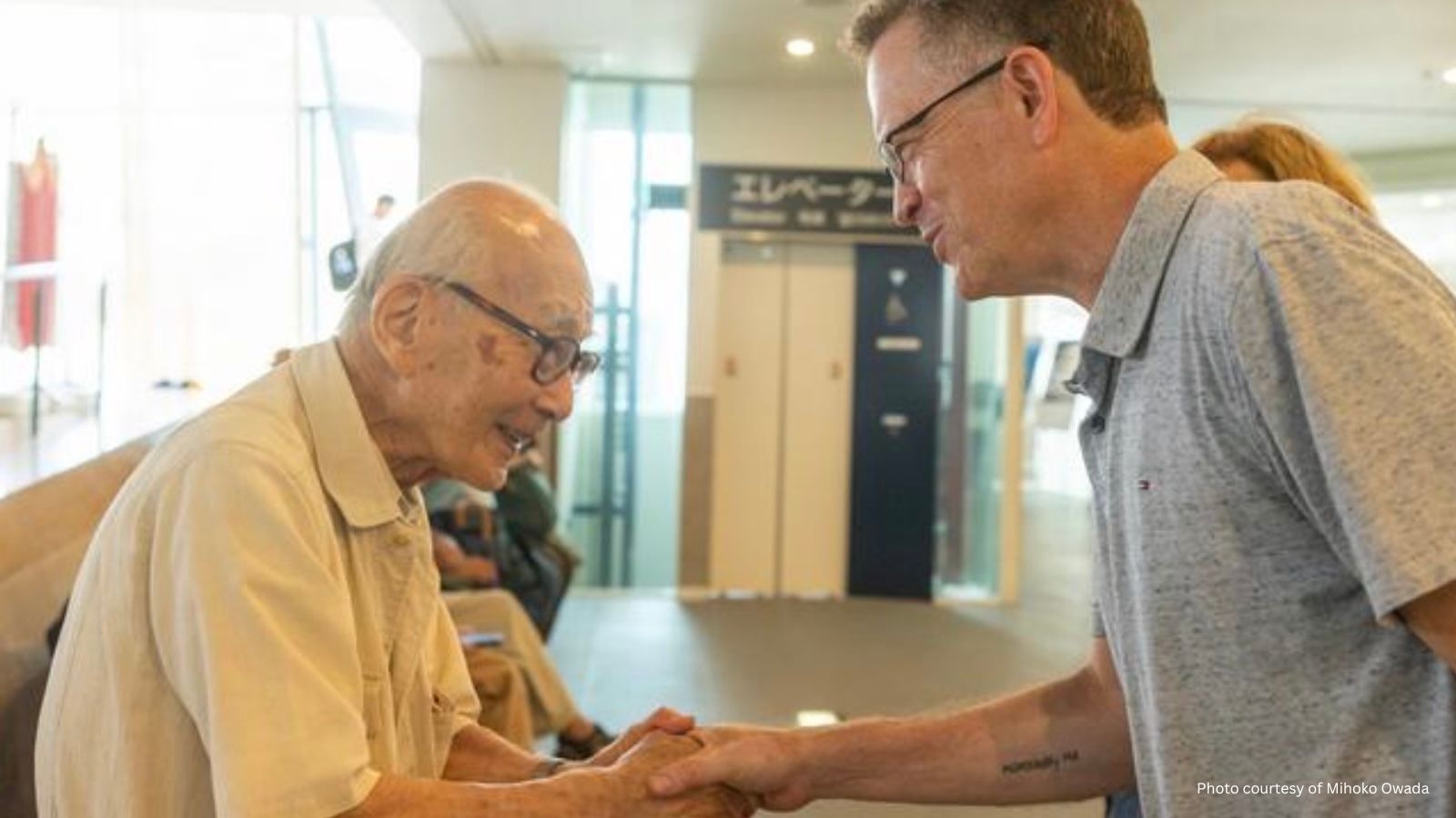 Thomas Banchoff with atomic bomb survivor and Nobel Peace Prize winner Nihon Hidankyo. Photo courtesy of Mihoko Owada.